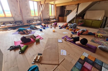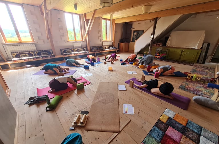 Le yoga développe la proprioception : faculté d'un individu à ressentir une partie de son corps sans avoir besoin de vérifier avec ses yeux. Ce travail de proprioception vous amène à développer un schéma corporel de plus en plus subtil, qui permet d'aligner votre corps et votre esprit, de "recoller les morceaux" afin de retrouver un état d'unité.